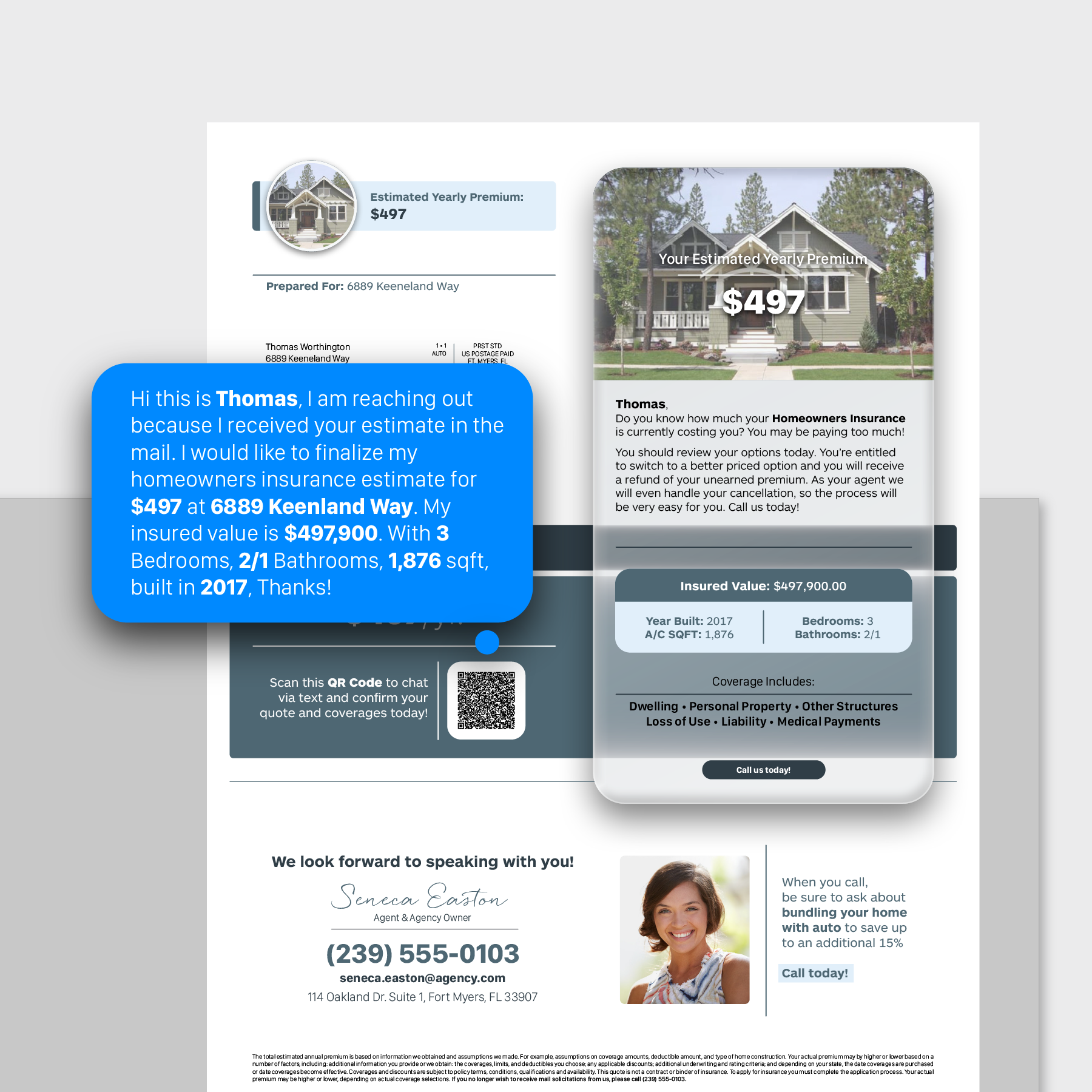 More than just a mailing. As a complete marketing strategy designed to maximize your returns you will benefit from our included, informed delivery, tracking, and programs designed specifically for insurance marketing.